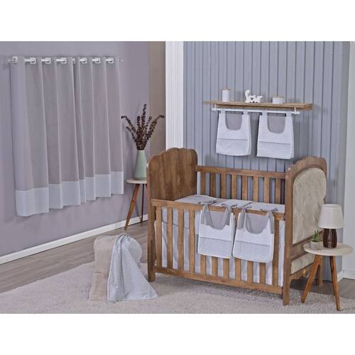 Seus filhos merecem todo conforto e aconchego possível! Contém na embalagem: 1 lençol com elástico 1,30m comp x 0,70m larg x 0,15m alt 1 lençol sem elástico 1,35m comp x 1,05m larg 1 fronha 40cm comp x 30cm larg 1 manta dupla face 1,15m comp x 0,95m larg (manta de microfibra na cor bege de um lado e tecido de algodão do outro) 2 porta fraldas 43cm alt x 32cm larg x 10cm prof (para ser pendurado em varão em móveis ou na parede) 2 porta fraldas com laço 38cm alt x 32cm larg x 10cm prof (para ser pendurado em varão ou no berço 1 cortina 2,70m larg x 1,60 alt (2 partes de 1,35m larg) Tecido e composição: Percal 180 fios 100% algodão Matelado de microfibra 100% poliéster Manta de microfibra 100% poliéster - Cortina decorativa, não bloqueia a luz externa - Foto ilustrativa, tonalidade da cor pode variar um pouco no produto real Produtos fabricados em Ibitinga-SP, a Capital Nacional do Bordado e do Enxoval. Marca: Não Informado