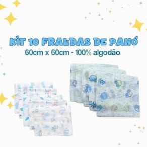 Kit 16 peças, ótimo custo benefício, 10 fraldas de pano estampada, 6 panos de boca 3 estampados e 3 lisos , fabricado com tecido 100% algodão proporcionando ao bebê segurança e conforto para sua pele sensível.