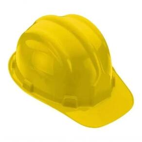 Capacete de segurança Amarelo com aba frontal, com carneira e injetado em polietileno de alta densidade e com slot. Fabricado em polietileno de alta densidade, suspensão plástica injetada com polietileno de baixa densidade e aparador de suor em espuma hipoalergênica.