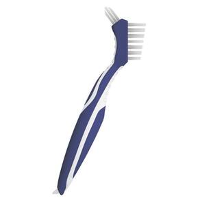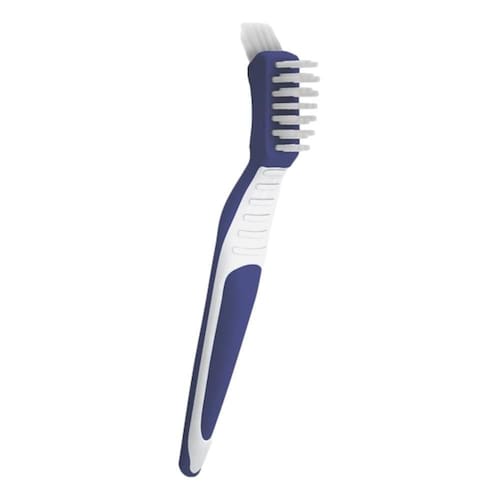 Equate Escova De Dentadura Com Deepclean Pick Branco E Azul A Escova para Dentaduras Equate é especialmente projetada para limpar dentaduras e pontes com facilidade e rapidez. Cerdas de nylon resistentes e duas cabeças de escova permitem uma limpeza verdadeiramente profunda. Seu tufo longo também atinge áreas de dentaduras difíceis de limpar, onde a placa e as bactérias podem se esconder, e sua largura total cuida de todas as superfícies da dentadura para ajudar a remover manchas e placa. Por fim, seu cabo ergonomicamente projetado com uma pega confortável e antiderrapante torna a escova extremamente fácil de manusear e manobrar, mesmo para aqueles com destreza limitada. dos EUA