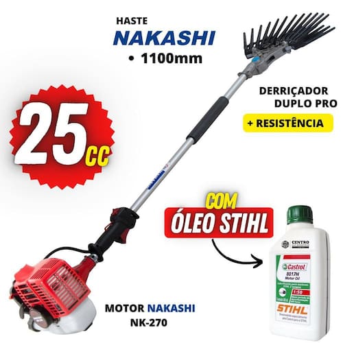 Derriçadeira Profissional Nakashi DDL270N com Haste 1100mm Motor Nakashi 25,4cc e Kit Duplo Pro + Óleo Castrol Stihl 500ml
