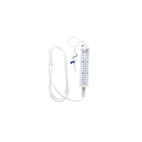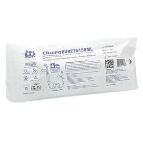 Somente por infusão por gravidade - Tampas protetora, câmara de gotejamento flexível, tubo, regulador de fluxo, conector de infusão, Hub entrada de ar, fluxo de ar, bureta 150ml, tampa inferior, válvula flutuante, dispositivo de perfuração e Conexão cônica externa.