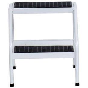 Escada com dois degraus e piso antiderrapante. Indicada para facilitar o acesso a camas hospitalares, mesas para massagem, uso doméstico em geral. Detalhes: em tubos redondos de 3/4 com pintura epóxi reforçada Degrau revestido com material sintético antiderrapante Pés com ponteira de pvc Dimensões externas aproximadas: comprimento 0,38cm x largura 0,37cm x 0,41cm de altura Altura do 1º degrau ao piso 0,18cm Altura do 1º degrau ao 2º 0,23cm Espessura da chapa do piso 0,91mm bitola 20 Piso de chapa de aço carbono SAE 1020 Marca: Não Informado
