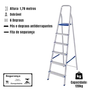 Escada 6 Degraus 120kg Dobrável Alumínio Mor