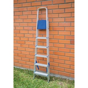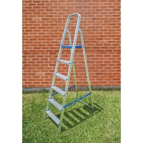 Para realizar consertos e manutenção doméstica com segurança é preciso ter uma escada que mantenha você firme no momento da utilização. Por isso a Mor elaborou a Escada de Alumínio 6 Degraus, ideal para pequenos reparos e para alcançar lugares mais elevados em sua casa, além de ser dobrável e fácil de guardar. Possui estrutura em tubo retangular e chapas em alumínio, material super leve, durável (mesmo em áreas litorâneas!) e peças plásticas em polipropileno de alta resistência. Além disso, seus pés antiderrapantes e travamento automático na plataforma superior garantem maior estabilidade para suportar até 120 Kg. As Escadas de alumínio Mor são fabricadas de acordo com a nova portaria do INMETRO N 219, de 06 de maio de 2021, o que garante a certeza de um excelente produto.