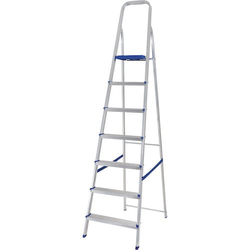 Uma peça essencial para se ter em casa. Busque seus pertences ou coloque os mesmos nos lugares mais latos dos armários e prateleiras usando esta escada de alumínio de 7 degraus mor. Fabricada em material resistente é antiferrugem, preservando a peça por mais tempo podendo ser usada tanto em ambientes internos quantos externos. Conta com 7 degraus para pegar o que deseja na altura que estiver e tem capacidade de peso de 120Kg. Ainda vem com trava de segurança e pés antiderrapantes. promovendo maior segurança. Use-a também para limpar a parte superior dos móveis. colocar as coisas nos armários. limpar janelas e outros.