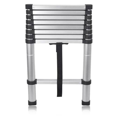 Em alumínio com pés antiderrapantes. Possui travas de segurança para elevação de cada degrau. Dimensões: - 2,6m 8degraus de extensão máxima na posição totalmente esticada, - 73cm 8 degraus de altura na posição fechada para armazenamento. Suporta o peso máximo de 150kg. Embalagem: caixa de papelão com 1 peça.