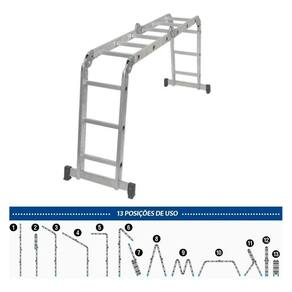 Multifuncionalidade Extrema: Configure sua escada em A, encosto, andaime e muito mais São 13 posições de uso para qualquer desafio. Segurança Inabalável: Travamento automático das articulações, barra estabilizadora e sapatas emborrachadas antiderrapantes garantem sua tranquilidade. Leveza e Mobilidade: Feita em alumínio de alta qualidade, é fácil de transportar e manusear, mesmo em trabalhos prolongados. Conforto e Firmeza: Degraus com maior área de contato e superfície antiderrapante para você trabalhar com confiança. Durabilidade Garantida: Fabricada com perfis extruturados em alumínio e articulações em aço galvanizado.