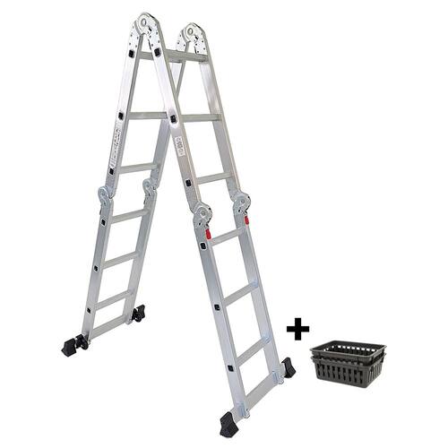 A Escada Multiuso é fabricada em alumínio de alta qualidade, garantindo uma estrutura compacta e fácil de transportar. Sua super resistência de até 150 kg proporciona segurança em cada degrau. Com pés de borracha que não deslizam, dobradiças de aço e travas de segurança, você pode confiar na estabilidade deste produto.