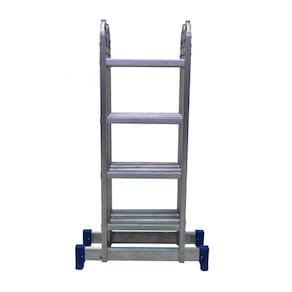 Informações Adicionais: Escada Multifunção Articulada 4 x 4 (4 sessões de 04 degraus), 16 degraus em alumínio, leve e fácil de transportar, pode ser utilizada estendida, como andaime, na posição de pintor e em outras 10 posições. Articulações precisas com travamento automático, barras estabilizadoras para melhor fixação e degraus antiderrapantes com maior área de contato.