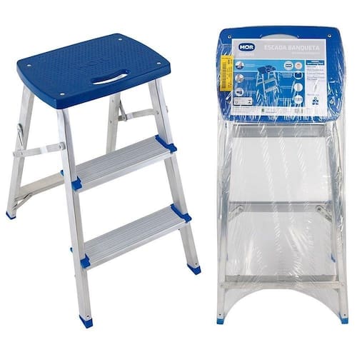 Especificações Gerais do Produto: A Escada Banqueta Alumínio da Mor vem para facilitar as tarefas do seu dia a diaPeças plásticas em polipropileno de alta resistência Estrutura e chapas em alumínio, material super leve, durável (mesmo em áreas litorâneas) As Escadas de alumínio Mor são fabricadas de acordo com a nova portaria do INMETRO N° 615 e 616, o que garante a certeza de um excelente produto Suportam até 120 kg