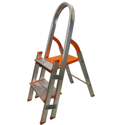 Produto: Escada de alumínio com 2 degraus duplos residencial - EMD002 Marca: Agata Descrição: A Escada de alumínio com 2 degraus duplos residencial EDM002 da Ágata possui estrutura em alumínio, corrimão de apoio duplo e acessórios em polipropileno. é prática e resistente. A EMD002 possui 2 degraus, sua capacidade de carga máxima é de 150 kg, possui trava de segurança em alumínio com articulação lateral, barra inferior traseira de reforço da estrutura, reforço do degrau traseiro, barra inferior traseira de reforço da estrutura. Sapatas duplas de borracha e degraus antiderrapantes. especificações: Capacidade de carga: até 150 kgDegraus: 2Altura aberta cm : 87Altura do patamar cm : 41Altura fechada cm : 98. Marca: Não Informado Ean: 7898083501452