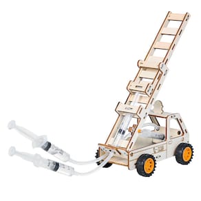 Material: Madeira Tamanho: 14 × 8,5 × 17 cm Peso: modelo de escada de caminhão de bombeiros de madeira de 125 GDIY projetado com um sistema de bomba de seringa hidráulica, ajudando as crianças a explorar a mecânica, a pressão e a dinâmica dos fluidos. Kit educacional de ciências STEM que introduz princípios de engenharia por meio de experimentos práticos e projetos de construção criativos. Inclui peças de madeira pré-cortadas, rodas, escadas e peças hidráulicas para facilitar a montagem, aprimorando a resolução de problemas e as habilidades motoras finas. Adequado para ensino em sala de aula, clubes STEM ou atividades domésticas, inspirando o interesse das crianças em ciências, física e design de engenharia. Não é adequado para crianças pequenas; contém peças pequenas. Este é apenas um modelo de experimento científico educacional, não destinado ao uso real de combate a incêndios.