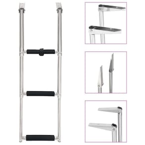 O design telescópico distinto em direção à escada pode se dobrar com rapidez e facilidade, para ajudá-lo a embarcar com segurança. Cada etapa possui uma banda de rodagem antiderrapante que pode garantir a segurança no máximo grau. Feita de aço inoxidável de alta resistência, a escada para barcos oferece durabilidade máxima e pode suportar um grande peso de 440,9 libras. Uma alça pode fixar os degraus quando não estiver em uso. Os acessórios de montagem estão incluídos.