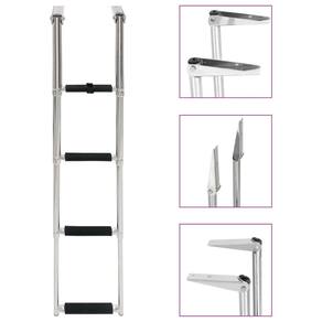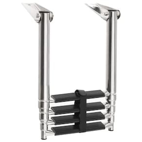 O design telescópico distinto em direção à escada pode se dobrar com rapidez e facilidade, para ajudá-lo a embarcar com segurança. Cada etapa possui uma banda de rodagem antiderrapante que pode garantir a segurança no máximo grau. Feita de aço inoxidável de alta resistência, a escada para barcos oferece durabilidade máxima e pode suportar um grande peso de 440,9 libras. Uma alça pode fixar os degraus quando não estiver em uso. Os acessórios de montagem estão incluídos.