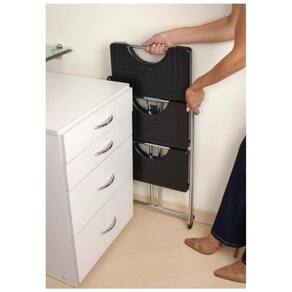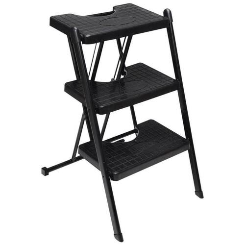 - Ideal para closets, cozinhas e ambientes compactos. - Sistema de segurança com trava inteligente; - Para uso doméstico e profissional; - Estrutura em aço-Carbono com banho em cromo; - Degraus em PP polipropileno na cor preta; - Degrau maior, garantindo mais estabilidade; - Suporta uma carga máxima de 120 KG; - Pés antiderrapantes, mais segurança; - Design prático e eficiente.