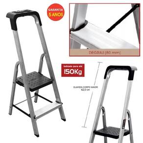 Escada Doméstica 5 Degraus em Alumínio Botafogo PRO ESC0025 Para quem procura uma escada doméstica com maior capacidade de carga e medidas maiores, apresentamos a Botafogo Pro. desenvolvida com padrão europeu, é comercializada tanto no mercado interno como no externo. Ela é sinônimo de qualidade. Proporciona maior alcance, conforto e segurança. Alcance, pois seu entre degraus é maior, tornando-a mais alta. Conforto, pois os seus degraus e patamar são maiores que os das escadas convencionais. Mais segurança, pois sua estrutura reforçada faz com que ela suporte até 150kg. Além de possuir um guarda corpo bem maior. Agora, o que é ainda mais bacana nela é o seu suporte de utilidades. Nele podemos apoiar diversas ferramentas, lâmpada e tem até um gancho para pendurar balde. É um produto certificado pelo INMETRO, 100% nacional e sustentável. Já que em seu fim de ciclo pode ser totalmente reciclável. Está disponível de 2 à 7 degraus. E ainda possui incríveis 5 anos de contra defeitos de fabricação. Então não esqueça. Escada doméstica, mas com pegada Profissional, é a Botafogo PRO Marca: Não Informado