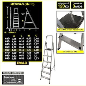 A Escada Doméstica de Alumínio 6 Degraus EVE1026 EVALD é a solução perfeita para quem busca praticidade, segurança e versatilidade em um único produto. Confeccionada em alumínio de alta qualidade, essa escada se destaca por sua estrutura moderna e leve, o que facilita o manuseio e o transporte em ambientes internos e externos. Seu design inteligente permite que, quando fechada, a escada ocupe pouquíssimo espaço, contribuindo para uma organização mais eficiente em residências com áreas reduzidas. Além disso, cada detalhe foi pensado para oferecer conforto durante o uso, com degraus amplos e sapatas antiderrapantes que garantem estabilidade mesmo em superfícies irregulares, pensada para atender às mais diversas necessidades do dia a dia, a EVE1026 é equipada com um patamar de polipropileno reforçado, que conta com um sistema de trava para evitar movimentos indesejados durante as atividades. Essa característica, aliada à capacidade de suportar até 120 kg, faz com que a escada seja uma escolha confiável para tarefas variadas, como pintura, limpeza e pequenos reparos domésticos. A preocupação com a segurança é evidente em cada componente, desde os materiais utilizados até os processos de fabricação, que seguem rigorosos padrões de qualidade e são certificados pelo INMETRO. Dessa forma, o produto não só garante durabilidade, mas também uma experiência de uso sem riscos, além de sua eficiência e robustez, a Escada Doméstica de Alumínio 6 Degraus EVE1026 EVALD reflete um compromisso com a sustentabilidade, pois seu material pode ser totalmente reciclado ao final de seu ciclo de vida. Com garantia de 3 anos. Assim, a escada se torna um investimento inteligente e versátil, combinando design, funcionalidade e segurança para transformar qualquer tarefa doméstica em uma atividade mais prática e descomplicada.
