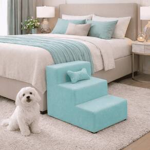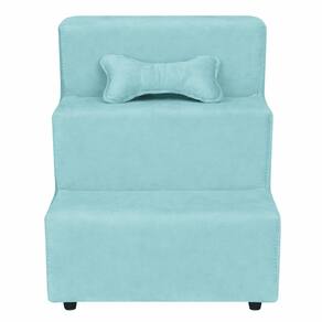 Escada Escadinha Para Pet 3 Degraus Com Osso Cor Turquesa Veludo Liberty Móveis