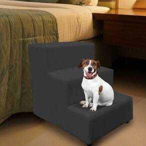 Escada Escadinha Pet Cachorro 3 Degraus Rampa Suede Premium Cinza