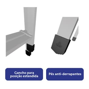 Multifuncional, pode ser utilizada como escada extensível, tipo tesoura ou separada em duas partes. Conta com sapatas de borracha antiderrapantes nos pés e terminais de proteção nas extremidades, garantindo maior firmeza e segurança durante o uso.