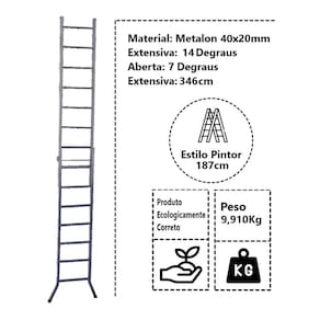 Escada Extensiva 3 em 1 Metalon 40x20mm 7 e 14 Degraus 187cm, uma escada é uma construção formada por uma série de degraus, destinada a ligar locais com diferenças de nível.