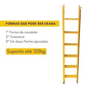 * SISTEMA 3 EM 1: Use como escada Extensiva (reta, até 3m), em formato Cavalete (tipo A, 1,67m) ou separada em Duas Partes independentes de 1,80m.