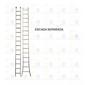 Características Principais: - Material da escada: Alumínio - Cor da escada: Alumínio natural fosco e acessórios azuis - Número de degraus da escada (posição estendida): 30 degraus - Número de degraus da escada (posição aberta ou separada): 15 degraus - Capacidade com carga (kg): 120 kg Ean: 7899085487577