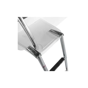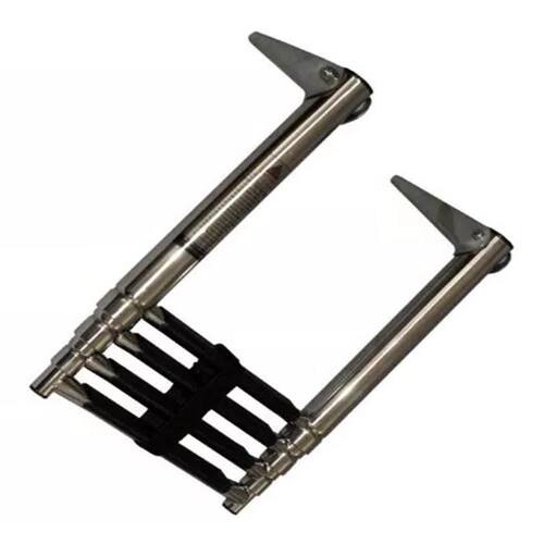 Escada 4 Degraus Compacta e de Fácil instalação, a escada com 4 degraus para embarcações é feita 100% em INOX 316 polido de alto brilho com degraus revestidos em borracha antiderrapante para dar mais segurança ao subir ou descer da embarcação A Haste de fixação ao casco possui articulação de até 270, que permite guardar a escada enquanto navega. Seus degraus são retráteis e possui cinta de segurança para prendê-los, deixando a escada super compacta para ser guardada. Características: Dimensões Máximas Aberta : 115cm x 25,4cm A x L Dimensões Mínimas Fechada : 38 x 25,4 A x L Diâmetro do tubo no degrau mais alto: 3cm Itens que Acompanham o Produto: 01 Escada em INOX com 4 Degraus; Marca: Não Informado
