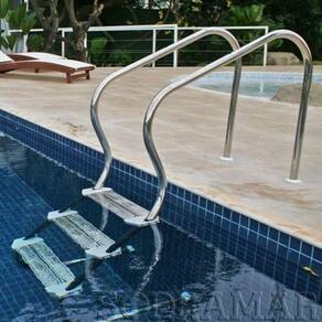 Confeccionada com materiais de alta qualidade e resistência que aumentam a durabilidade do produto, a Escada Comfort 2" Sodramar possui corrimão fabricado em aço inox polido e espelhado com diâmetro de 2 polegadas e degraus duplos produzidos em aço inox. A escada suporta até 150 kg e é ideal para piscinas com profundidade de 1,45 m a 1,70 m. De fácil instalação, acompanha chumbador em ABS e borracha para encosto na parede da piscina.