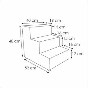 Escada Para Cachorro Estofada 3 Degraus - KF Móveis A Escada para Cachorro Estofada 3 Degraus da KF Móveis é perfeita para auxiliar nossos amiguinhos de quatro patas a subir e descer de lugares como sofás, poltronas, camas e muito mais. Com ela, você evita o impacto nas articulações do seu pet, contribuindo para o seu bem-estar. Com um design estofado e elegante, essa escada pet é ideal para animais com peso de até 30 quilos. Ela possui 3 degraus estofados com altura de 16 cm e profundidade de 16 cm, proporcionando conforto e segurança para o seu pet. A estrutura da escada é feita em madeira de reflorestamento, garantindo resistência e durabilidade. Os degraus e laterais são preenchidos com espuma D23, oferecendo maciez e conforto para o seu pet. Além disso, a escada possui sapatas que evitam que ela escorregue, garantindo maior estabilidade. O revestimento em tecido linha A confere um toque de sofisticação ao produto. A escada é enviada montada, facilitando o seu uso imediato. Ela possui as seguintes medidas: altura de 48 cm, largura de 40 cm e profundidade de 52 cm. Para limpar a escada, basta utilizar um pano levemente úmido. Recomendamos evitar o uso de produtos químicos agressivos, para preservar a qualidade do tecido e da estrutura. A Escada para Cachorro Estofada 3 Degraus - KF Móveis é uma ótima opção para garantir o conforto e bem-estar do seu pet. Aproveite e adquira já a sua! Informações técnicas: - Marca: KF Móveis - Material da estrutura: Madeira de reflorestamento - Revestimento: Tecido linha A - Espuma: D23 - Altura dos degraus: 16 cm - Profundidade dos degraus: 16 cm - Peso suportado: até 30 kg - Medidas: altura 48 cm, largura 40 cm, profundidade 52 cm - Sapatas: Sim - do fabricante: 90 dias contra defeitos de fabricação Observações: - Pode haver diferença de tonalidade entre a imagem e o produto real devido ao tratamento de imagens e calibração de cores do seu monitor ou celular. - As imagens são meramente ilustrativas e não acompanham objetos de decoração e eletrônicos.