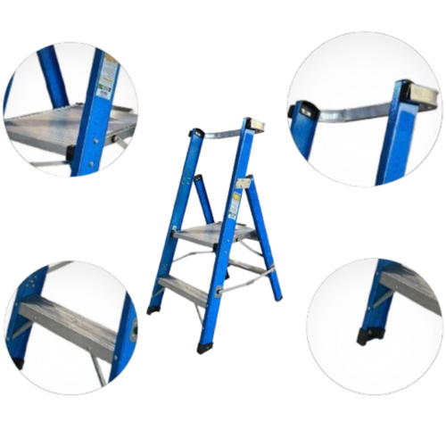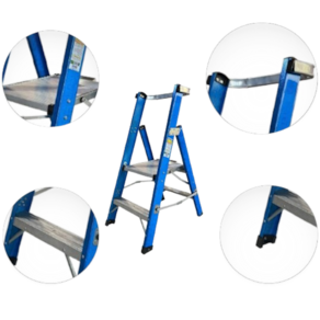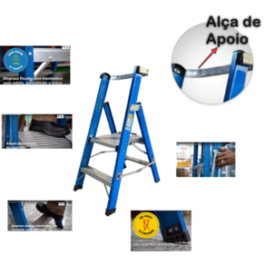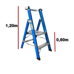 As Escadas Plataforma Profissionais são de acesso unilateral. Estas escadas são leves, com baixa absorção de água e não são condutoras de eletricidade. Os degraus são planos e em alumínio, com frisos antiderrapantes. Eles são fixados aos montantes por rebites, o que possibilita sua troca. A plataforma de 430 x 390 x 380 mm é em alumínio. Uma alça de apoio a 60 cm da plataforma é incluída para proporcionar segurança na utilização.