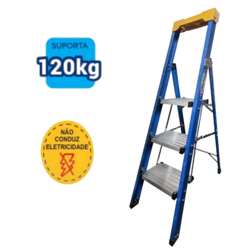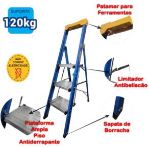 Escada Plataforma Tripla Premium 0,90m Fibra Alumínio Wbertolo PPT090