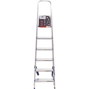. .Para realizar consertos e manutenção doméstica com segurança é preciso ter uma escada que mantenha você firme no momento da utilização. Por isso a Mor elaborou a Escada de Alumínio 6 Degraus, ideal para pequenos reparos e para alcançar lugares mais elevados em sua casa, além de ser dobrável e fácil de guardar. Possui estrutura em tubo retangular e chapas em alumínio, material super leve, durável (mesmo em áreas litorâneas!) e peças plásticas em polipropileno de alta resistência. Além disso, seus pés antiderrapantes e travamento automático na plataforma superior garantem maior estabilidade para suportar até 120 Kg. As Escadas de alumínio Mor são fabricadas de acordo com a nova portaria do INMETRO N° 615 e 616, o que garante a certeza de um excelente produto. Possuem três anos de garantia.