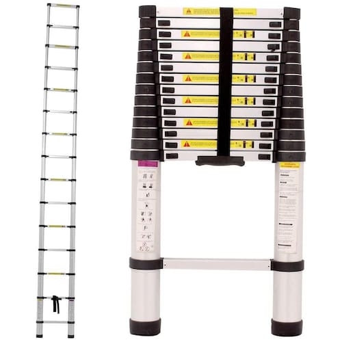 Escada Telescopica reta Em Alumínio 5 Metros Escada Alumínio Telescópica 4.4 m 15 degraus suas tarefas nas alturas ficarão muito mais praticas e seguras. A escada telescópica Nagano possui uma estrutura toda em alumínio e travas de segurança. Total de degraus 15Extensão comprimento 4 4 m Marca: Não Informado Ean: 7805782487918