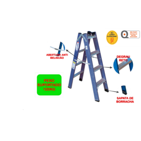 Escada Tesoura dupla 1.8m Alumínio/Fibra 4 degraus WBertolo TAFDP 4 Linha Premium