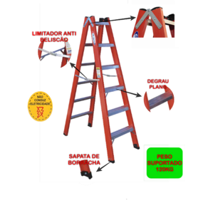 As escadas Tesouras Duplas (TAFD) são escadas compostas por duas partes e podem ser utilizadas de ambos os lados. Estas escadas são leves, com baixa absorção de água e não são condutoras de eletricidade. Fabricadas conforme a norma ABNT/NBR 16308.