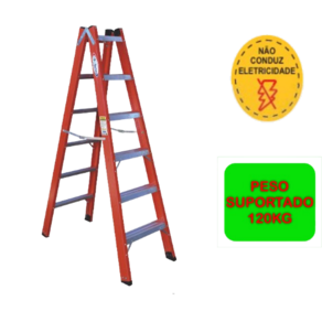 Escada Tesoura dupla 1.8m Alumínio/Fibra 6 degraus WBertolo TAFD6