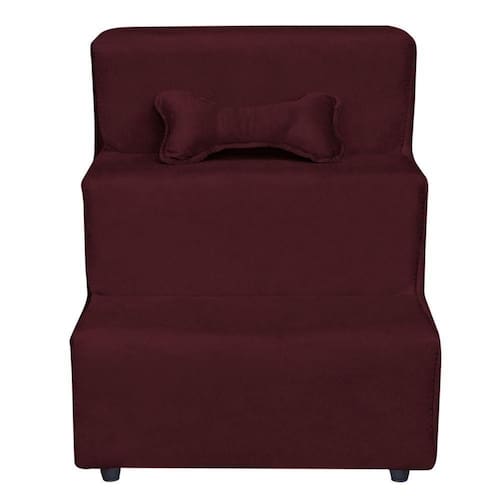 Escadinha Pet 3 Degraus Cachorro E Gato Veludo Bordô