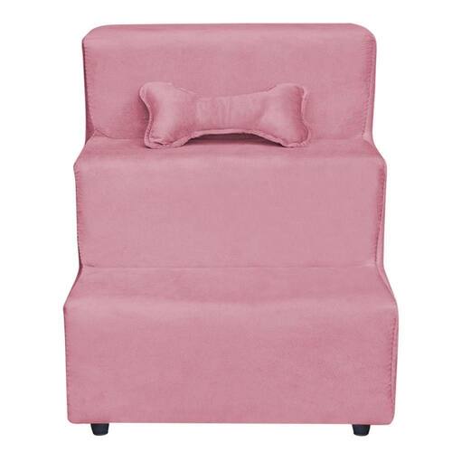 Escadinha Pet 3 Degraus Cachorro E Gato Veludo Rosa