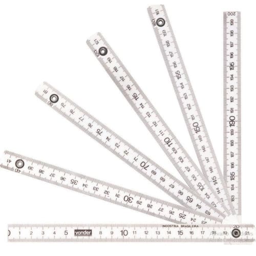 Escala Métrica de Plástico 2 metros Nove54 Escala métrica 2 metros plástico - Vonder Conteúdo da embalagem 1 Escala métrica Aplicações e dicas de uso Indicada para medições e traçados em geral Destaques e diferenciais Fabricada em poliestireno PS , proporcionando leveza e resistência à umidade