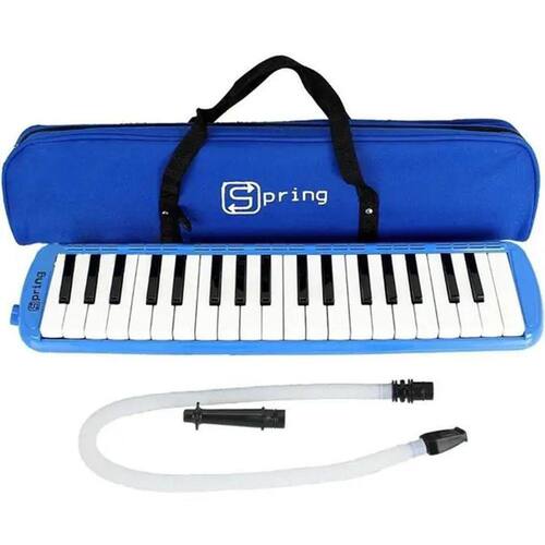 A escaleta spring azul, de 37 teclas vem acompanhada por uma bag, um bocal e cabo de extensao.