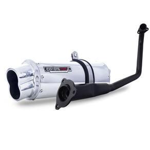 Escapes esportivos confeccionados em alumínio polido ou preto no formato oval com boca em "8". Proporciona melhor performance em médios e altos rpm's, favorecendo a subida rápida de giro, retomada de velocidade, menor giro do motor em velocidades de cruzeiro devido a menor restrição, o que contribui para um menor desgaste das peças internas do motor.Ideal para quem quer maior agilidade e performance na cidade ou estrada, com uma pilotagem mais esportiva. Proporciona um ronco encorpado e grosso dando a impressão de ser uma moto de maior cilindrada.