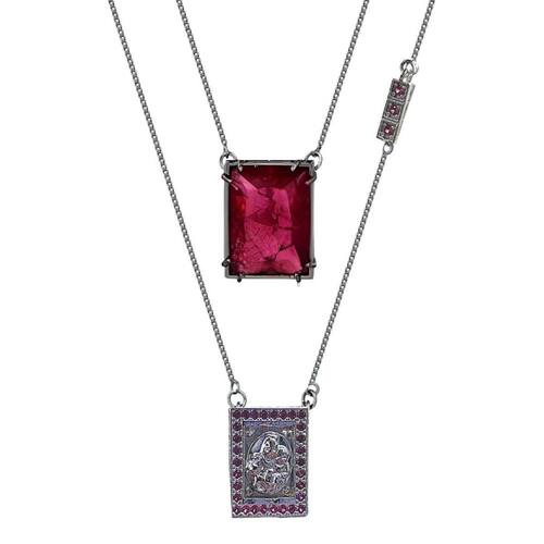 Características da Corrente Escapulário Banhada a Ródio Branco com Pedra Rubi Fusion Escapulário Banhado a Ródio Branco Duplo Frontal Pingente Pedra Rubi Fusion com 2 cm x 1,5 cm Corrente com 65 cm de comprimento