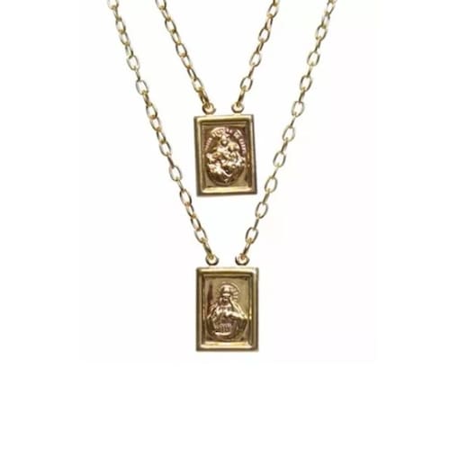 Escapulário Carmo e Jesus Religioso Folheado 18k