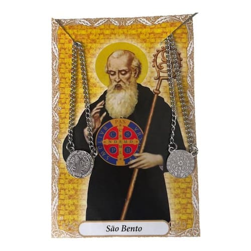 Escapulário Católico em Aço Inox Foto 32 cm - Escolha o seu Cor: São Bento Escapulário Católico em Aço Inox Foto 1,5 x 32 cm - Escolha o seu