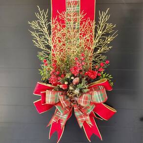 Receba o Natal com uma decoração que é pura tendência e sofisticação. O Escapulário Natalino vermelho é a peça perfeita para criar uma primeira impressão inesquecível, unindo a tradição do escapulário de porta com a modernidade e o luxo da cor Vermelho