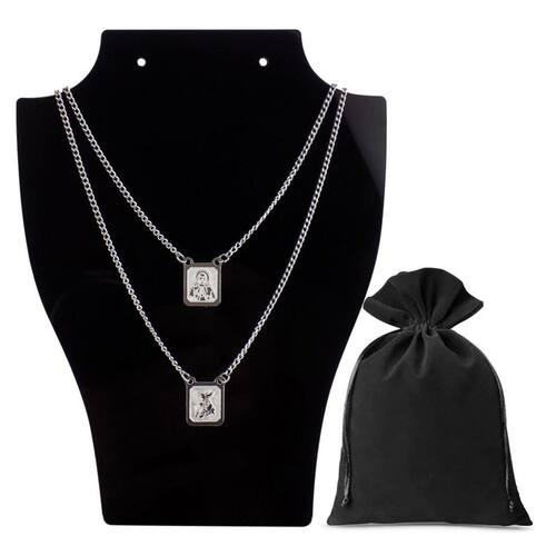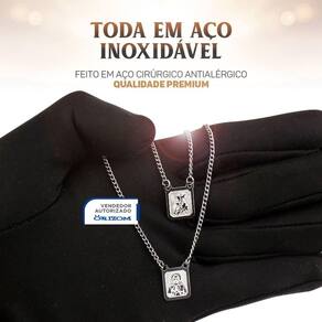 Escapulario masculino são jorge jesus sagrado presente qualidade premium religioso corrente elo 1 por 1 e placa pequena desenhada a laser - Perfeito para um visual único e autêntico Feito em aço inox de alta qualidade, este escapulário é um símbolo de proteção e estilo. Com São Jorge Guerreiro e Sagrado Coração de Jesus gravados em detalhes a laser, garantimos durabilidade e resistência para que você possa usar sem preocupações. À prova de oxidação, fácil de limpar e anti-alérgico, este acessório é ideal para usar em todas as ocasiões - do banho à academia. Surpreenda alguém especial com esta peça única, que enviaremos em um elegante saquinho de veludo de jóias. Não perca a oportunidade de garantir já o seu