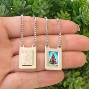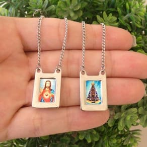 Escapulário nossa senhora aparecida e sagrado coração aço inox Comprimento da corrente: 60 cm 30 cm cada lado Altura da placa: 1,7 cm - largura da placa: 1,4 cm - espessura da placa: 0,1mm Peso:6,3g Corrente elo 1 por 1 e placa imagem foto sagrado coração de jesus e nossa senhora aparecida, a placa no verso escrito o senhor te abençoe e te guarde. Escapulário confeccionado em aço inox de alta qualidade. Além do estilo, beleza, possuem alta durabilidade e antialérgico. Nossas peças em aço inox 316l: - nunca fica preta - nunca oxida - nunca escurece - pode usar no banho, no mar e na piscina a vontade - pode usar na academia, na corrida e qualquer atividade - antialérgico - brilho de qualidade - não risca facilmente