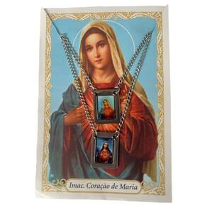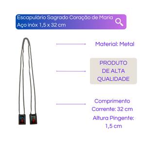Escapulário Sagrado Coração de Maria Aço Inox 1,5 x 32 cm